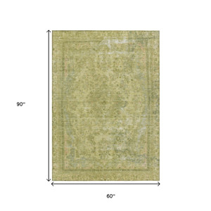 5' X 8' Fern Green And Sage Medallion Washable Indoor Outdoor Area Rug