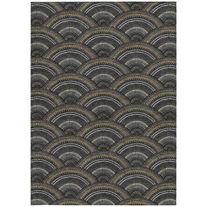 10' X 14' Black Ivory And Gold Geometric Washable Indoor Outdoor Area Rug