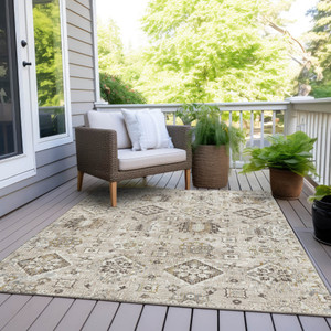 5' X 8' Terra Cotta And Ivory Geometric Washable Indoor Outdoor Area Rug - Terra Cotta, Ivory
