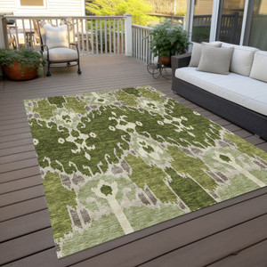 10' X 14' Olive Green And Gray Floral Washable Indoor Outdoor Area Rug - Olive Green, Gray