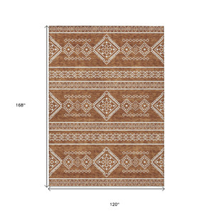 10' X 14' Beige Taupe And Green Abstract Washable Indoor Outdoor Area Rug
