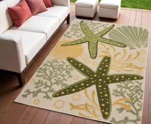 5' X 8' Blue Yellow And Orange Starfish Indoor Outdoor Area Rug - Blue, Yellow, Orange