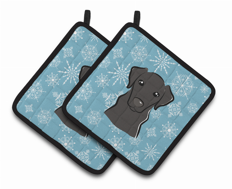 Snowflake and Dog Art Pair of Pot Holders - 638508388414