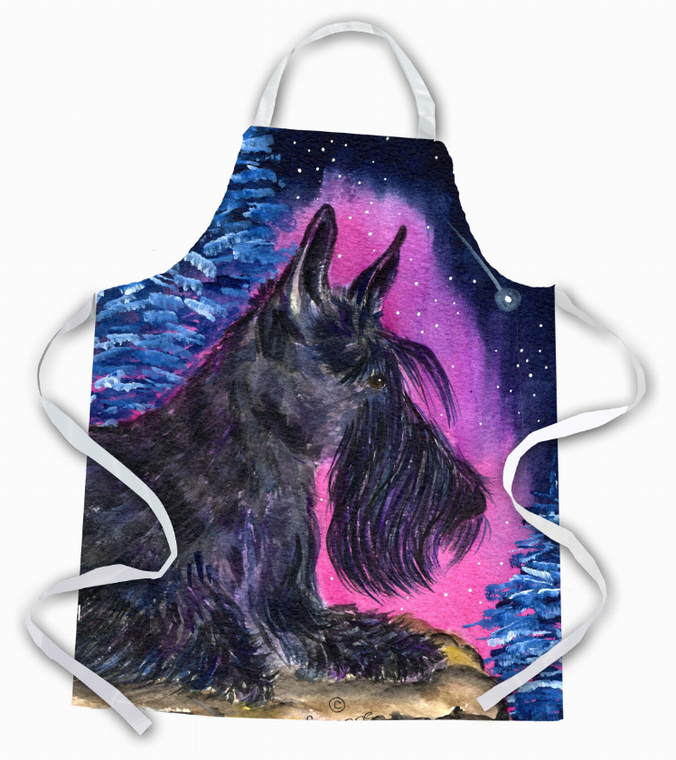 Apron, Bib Style, 27"H x 31"W; 100% Ultra Spun Poly, White, braided nylon tie straps, sewn cloth neck band. These bib style aprons are not just for cooking - they are also great for cleaning, gardening, art projects, and other activities, too! This apron is dyed to match our artwork. The fabric dyes are permanent and heat set for durability. Wash the functional art apron in cold water without bleach and tumble dry. The dryer may knot the tie straps. You can always lay the apron flat to dry or hang to dry. The apron is 100% polyester and should dry rather quickly. The dyes are stain resistant.